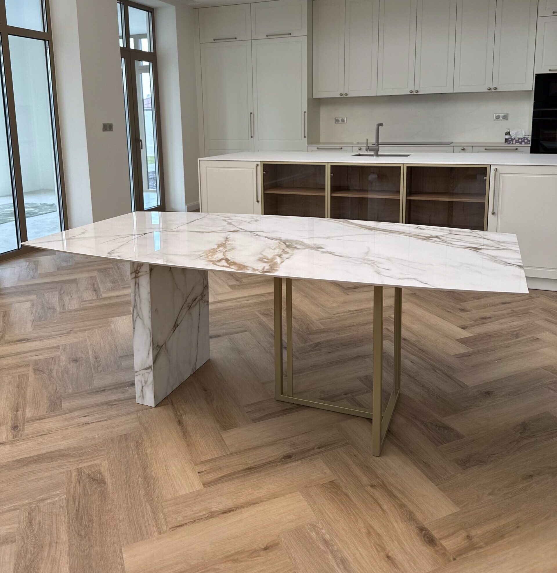 Naše podnože sú navrhnuté tak, aby sa dali prispôsobiť akémukoľvek materiálu stolovej dosky, vrátane skla, drevotriesky, MDF, kameňa, keramiky a masívu. Štandardne sú podnože pripravené na uchytenie dreva alebo drevotriesky. Pre sklenené dosky používame špeciálne nerezové konzolky. Pri kameňoch a keramike riešime uchytenie pomocou oporného rámu na mieru, ktorý obopína celý obvod dosky, aby sme zabezpečili pevné a stabilné uchytenie.