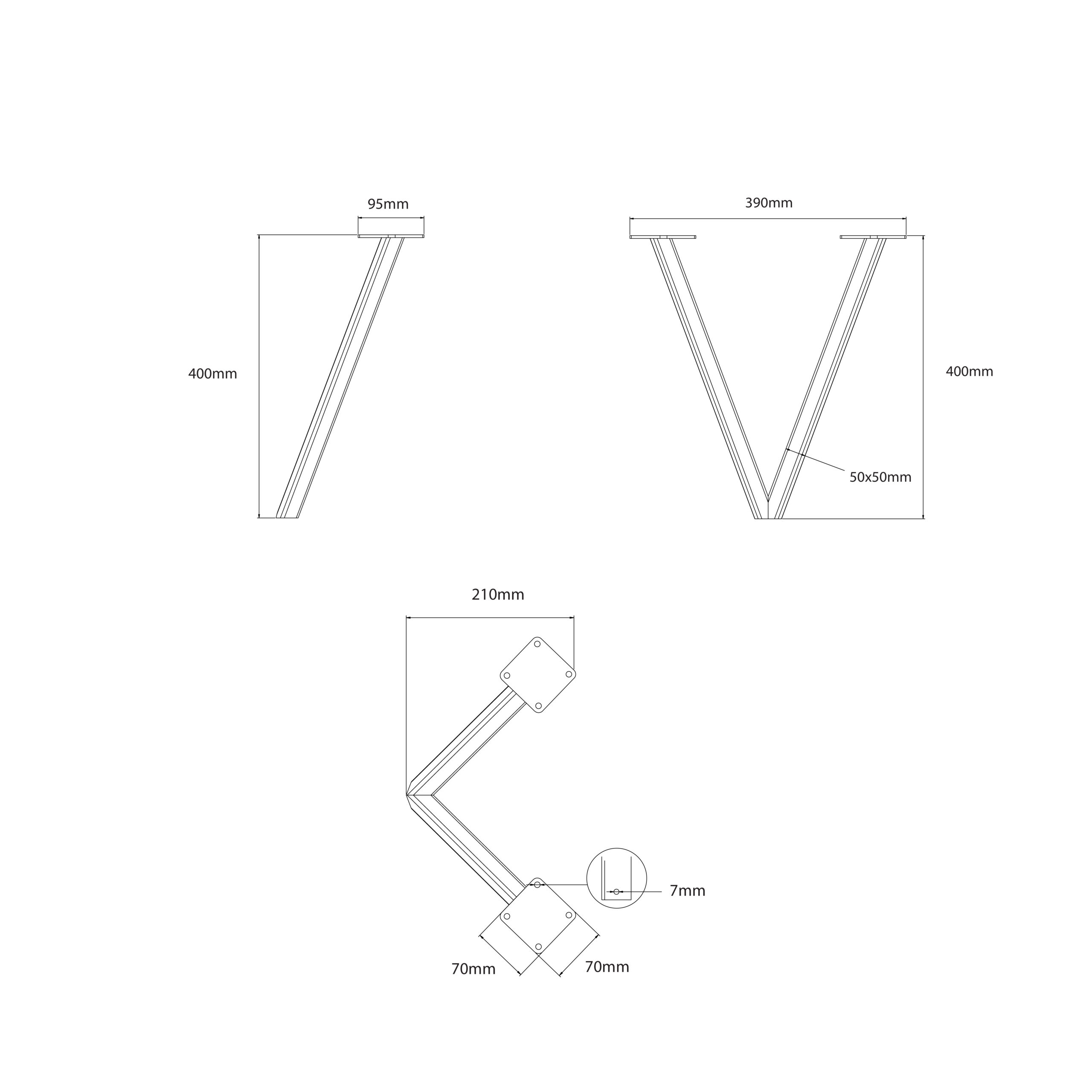° Platničky stolovej nohy sú vyrobené z 5mm hrubého plechu. Montážne diery ø7 mm.