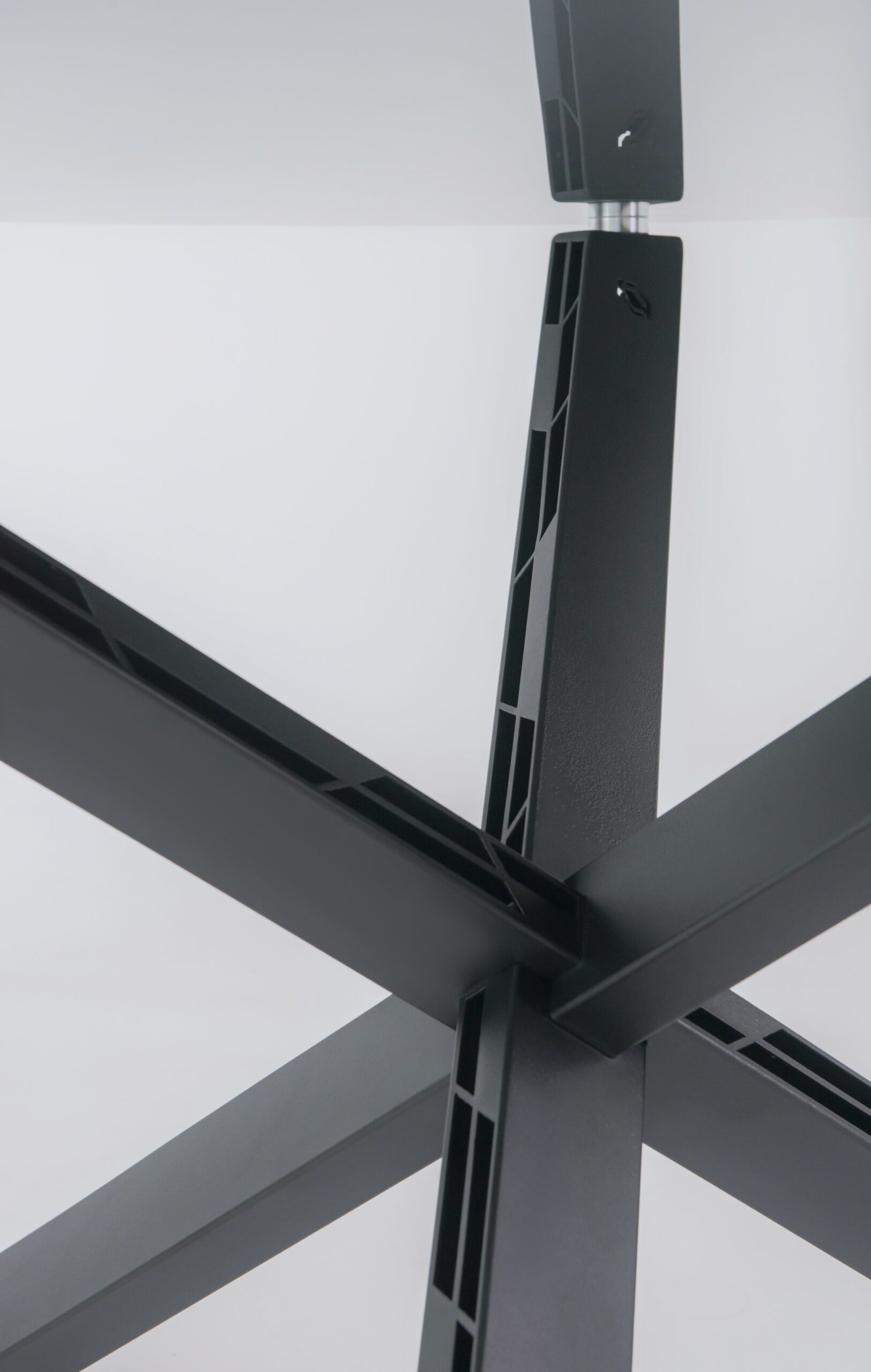 Naše podnože sú navrhnuté tak, aby sa dali prispôsobiť akémukoľvek materiálu stolovej dosky, vrátane skla, drevotriesky, MDF, kameňa, keramiky a masívu. Štandardne sú podnože pripravené na uchytenie dreva alebo drevotriesky. Pre sklenené dosky používame špeciálne nerezové konzolky. Pri kameňoch a keramike riešime uchytenie pomocou oporného rámu na mieru, ktorý obopína celý obvod dosky, aby sme zabezpečili pevné a stabilné uchytenie.