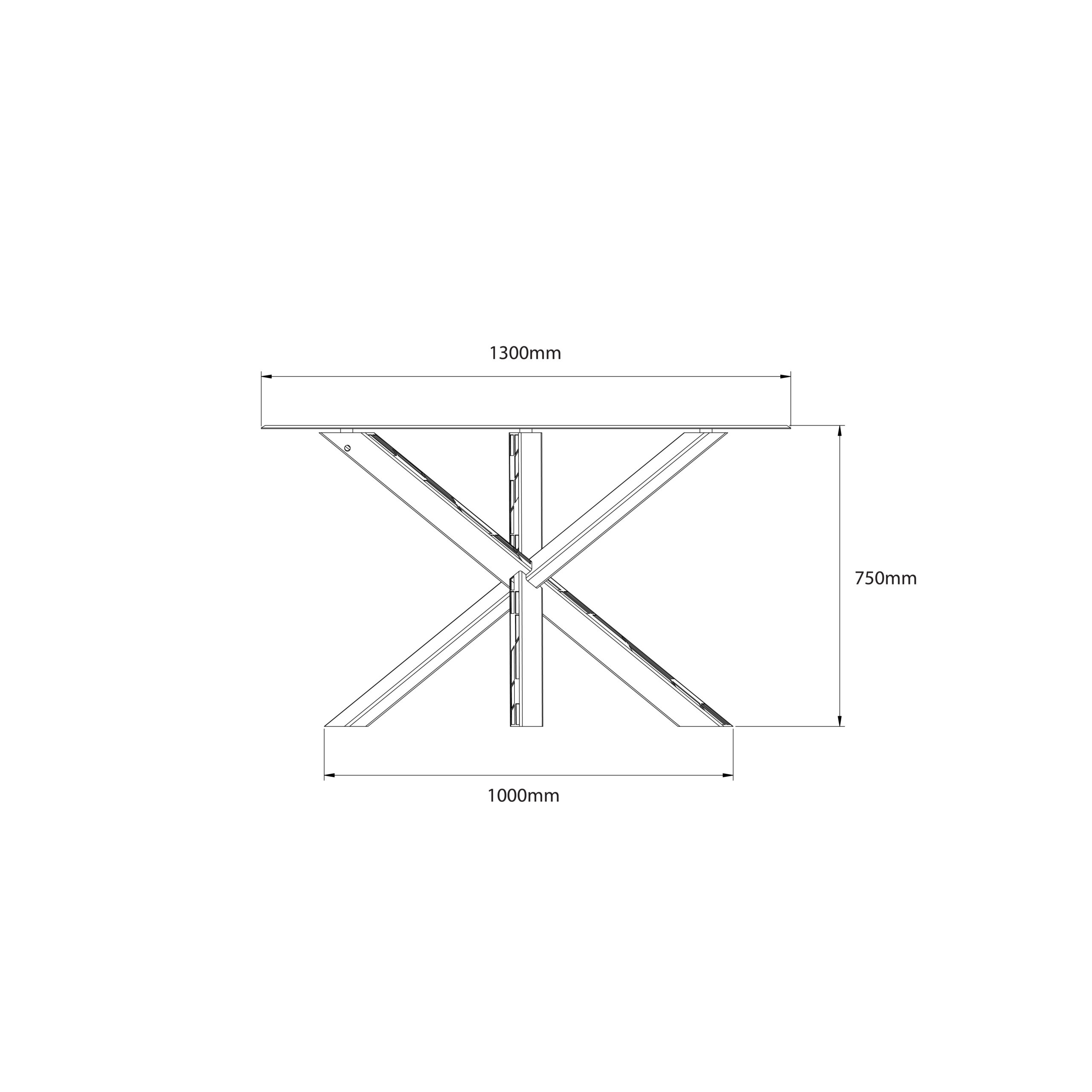 Štíhle nohy podnože sú vyskladané z materiálu 80x40mm. Využitie pozdĺžnych výrezov po užšej hrane profilu dodávajú podnoži estetický dojem. Celý stôl zvýrazňuje sofistikovaný prechod troch nôh cez seba, ktorý obohacuje podnož o zaujímavý efekt.