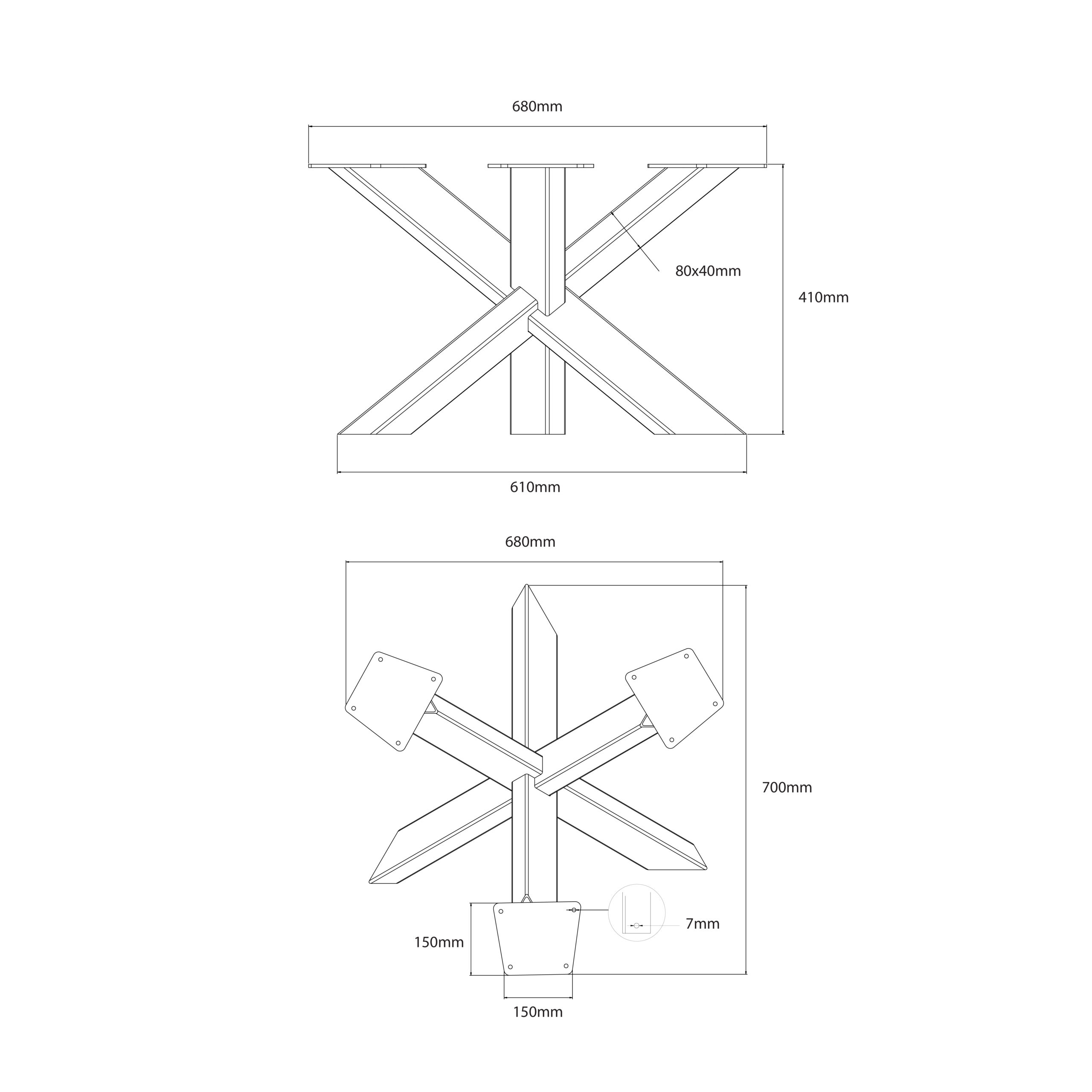 Naše podnože sú vyrobené výhradne z kvalitnej ocele, ktorá zaručuje ich pevnosť a odolnosť. Zvárame ich tak, aby zvarové spoje zostali skryté a podnože vyzerali vizuálne čisté a elegantné. Podnož sa dá upraviť na mieru podľa požiadaviek.